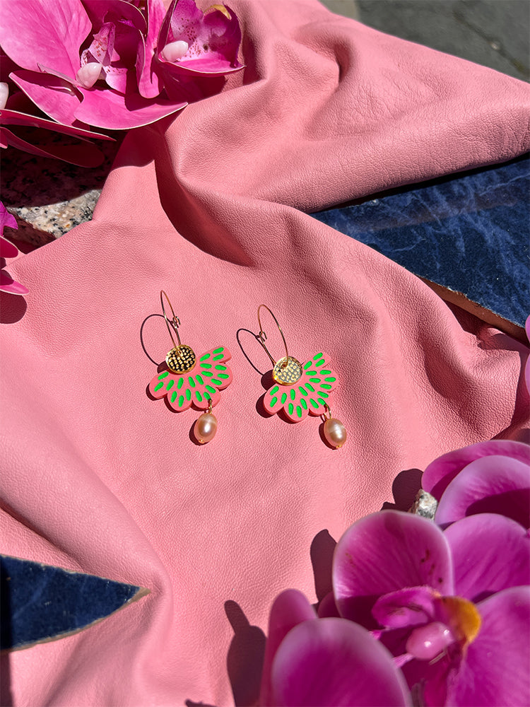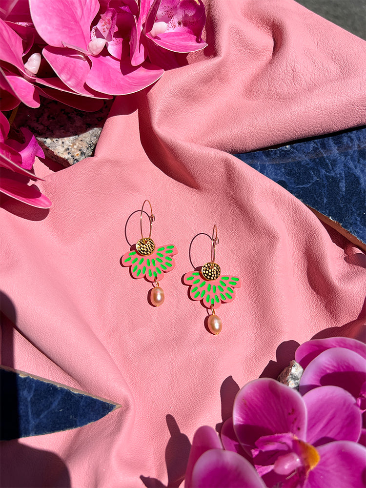 petal & pearl hoop | pink & neon green