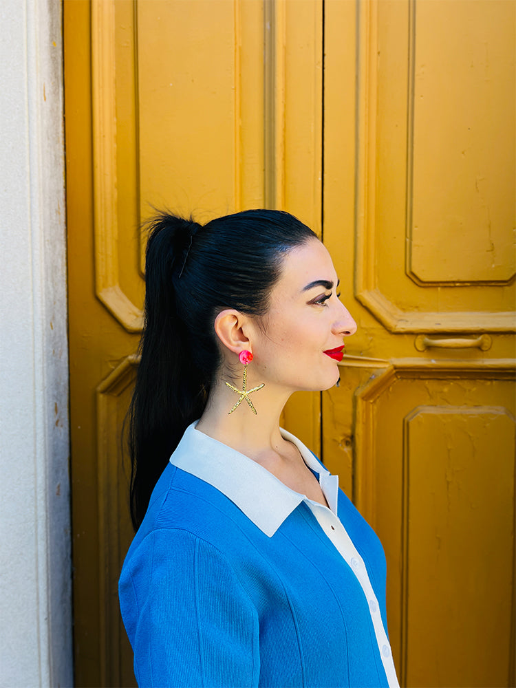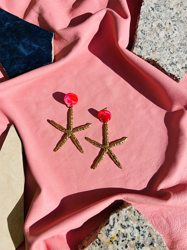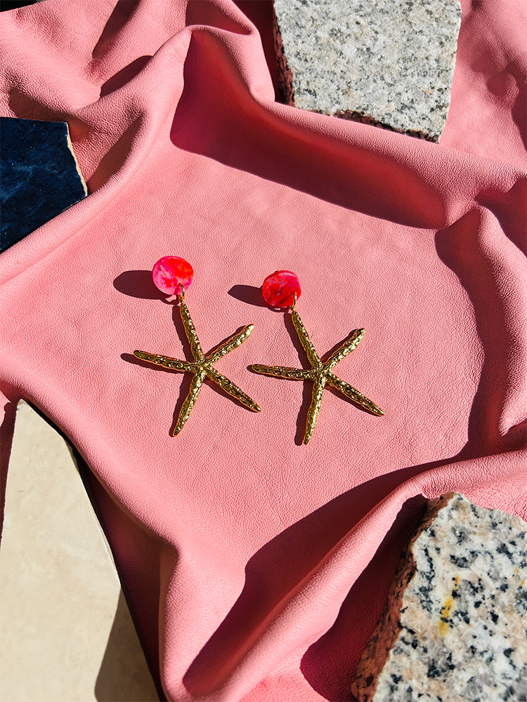 Our pieces are handcrafted from a range of mixed materials; hand poured resin, hand painted acrylics, matte silk finish acrylics, mineral acrylics, mirror, freshwater pearls, beads, faux leather tassels, silk tassels, brass, 18k gold plating.