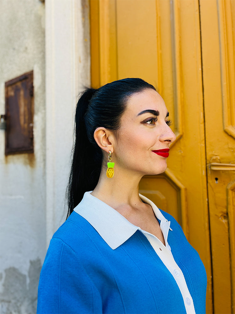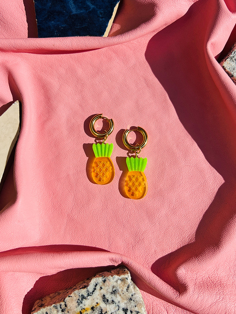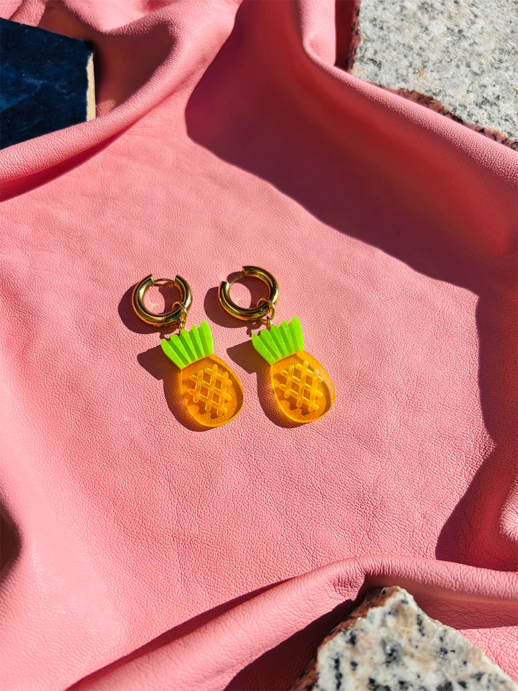 Our pieces are handcrafted from a range of mixed materials; hand poured resin, hand painted acrylics, matte silk finish acrylics, mineral acrylics, mirror, freshwater pearls, beads, faux leather tassels, silk tassels, brass, 18k gold plating.