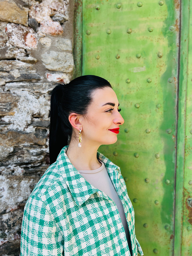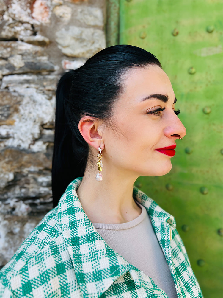 Our pieces are handcrafted from a range of mixed materials; hand poured resin, hand painted acrylics, matte silk finish acrylics, mineral acrylics, mirror, freshwater pearls, beads, faux leather tassels, silk tassels, brass, 18k gold plating.