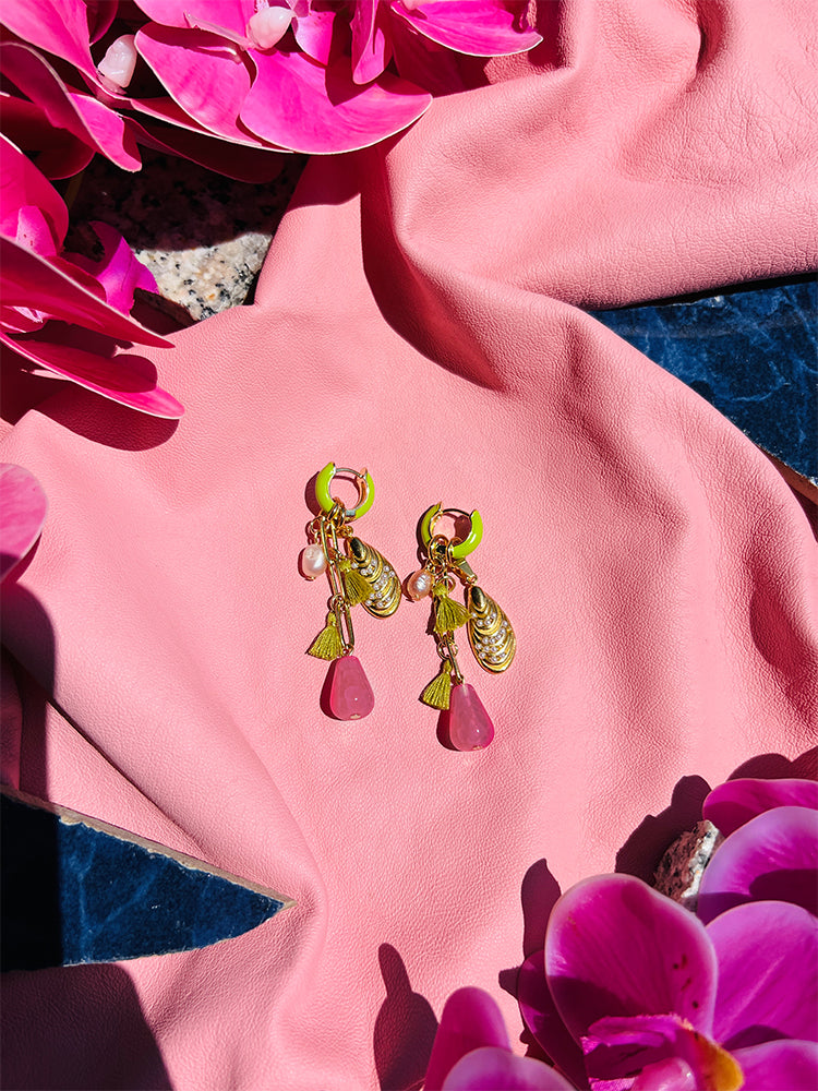 pink mussels | huggie hoop | light pink bead