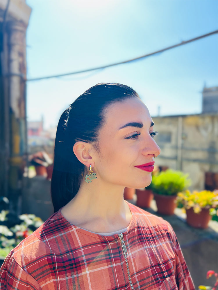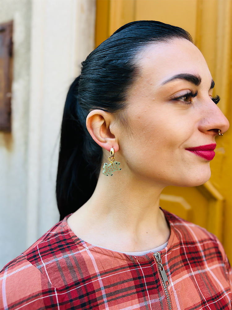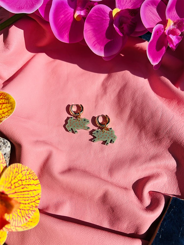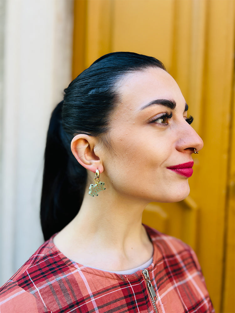 Our pieces are handcrafted from a range of mixed materials; hand poured resin, hand painted acrylics, matte silk finish acrylics, mineral acrylics, mirror, freshwater pearls, beads, faux leather tassels, silk tassels, brass, 18k gold plating.