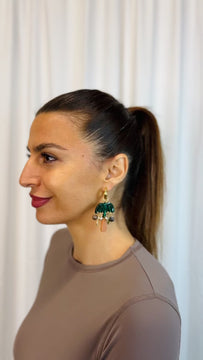 Our pieces are handcrafted from a range of mixed materials; hand poured resin, hand painted acrylics, matte silk finish acrylics, mineral acrylics, mirror, freshwater pearls, beads, faux leather tassels, silk tassels, brass, 18k gold plating.
