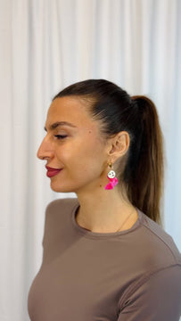 Our pieces are handcrafted from a range of mixed materials; hand poured resin, hand painted acrylics, matte silk finish acrylics, mineral acrylics, mirror, freshwater pearls, beads, faux leather tassels, silk tassels, brass, 18k gold plating.