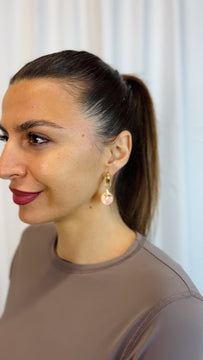 Our pieces are handcrafted from a range of mixed materials; hand poured resin, hand painted acrylics, matte silk finish acrylics, mineral acrylics, mirror, freshwater pearls, beads, faux leather tassels, silk tassels, brass, 18k gold plating.